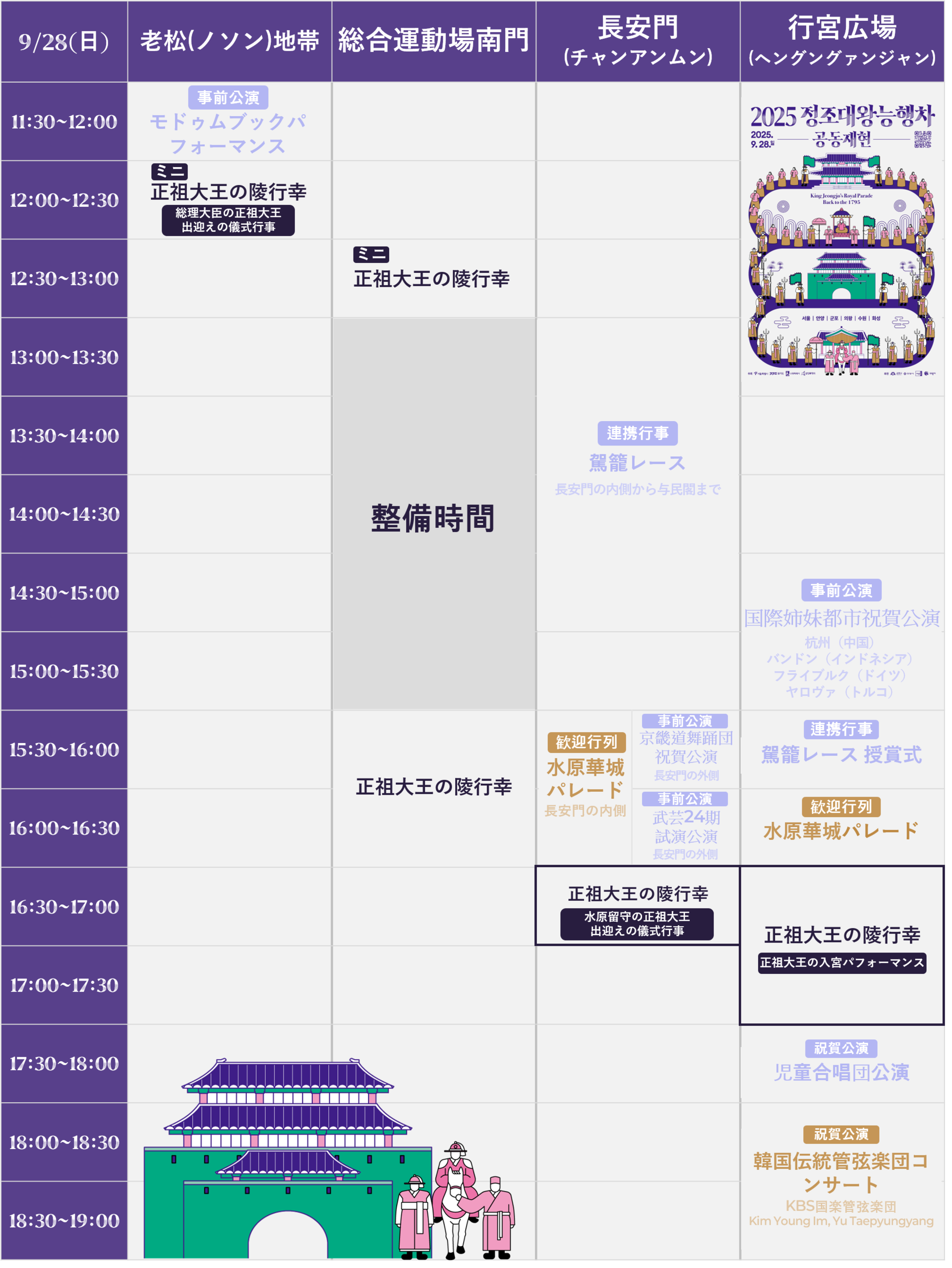 11:50~12:05 (ミニ) 正祖大王の陵行幸 / '総理大臣の正祖大王 出迎えの儀式行事''
